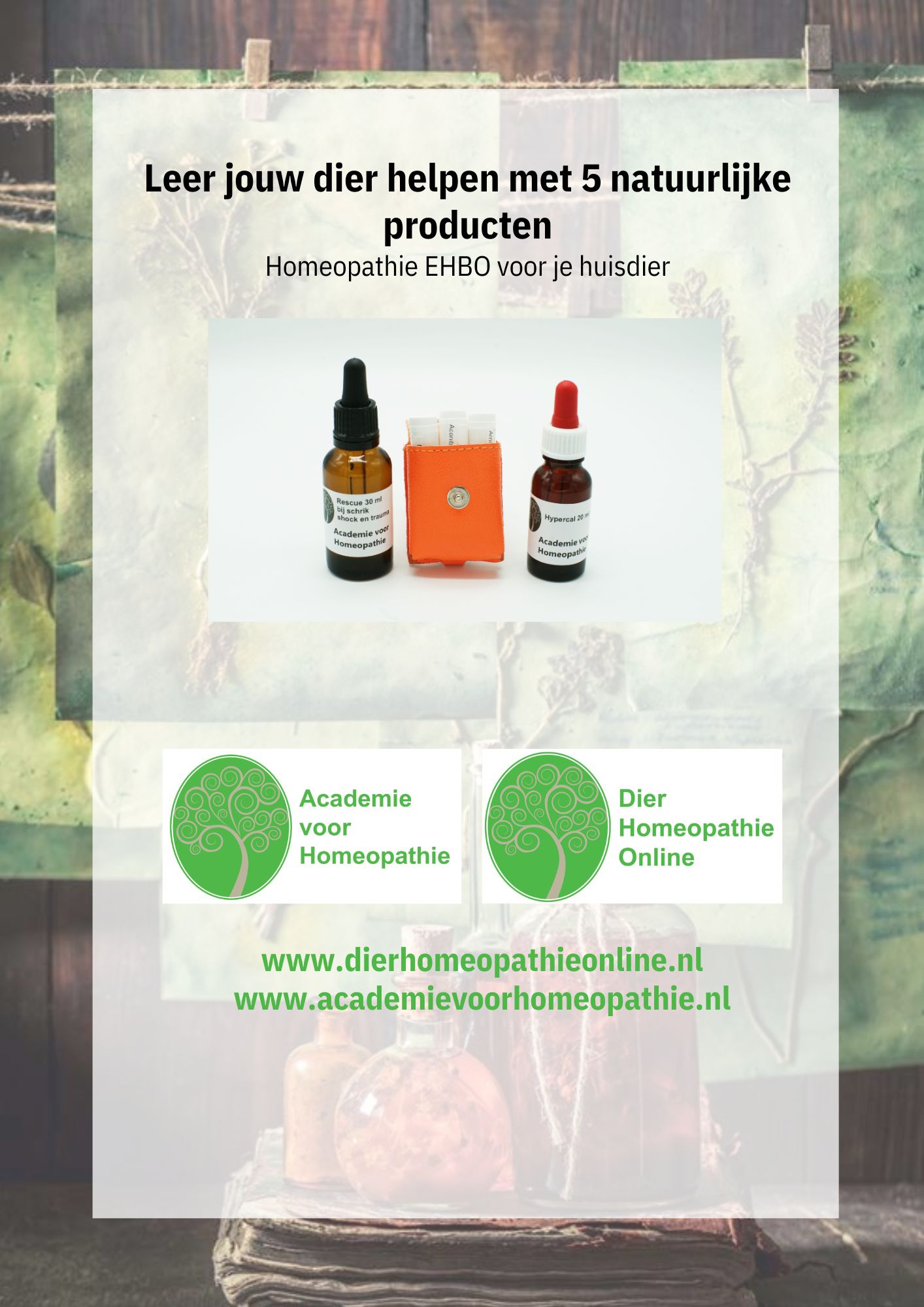 Ontdek de kracht van homeopathische middelen, fytotherapie (oertincturen) en Bachbloesemremedies, en leer hoe je jouw dier veilig en natuurlijk kunt helpen, direct wanneer het nodig is.